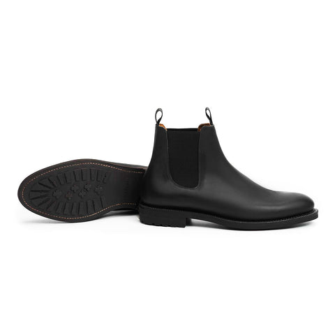 Finished with a double city lug outsole for traction and resilience, this boot is designed to accompany you effortlessly through the demands of daily wear. Refined yet rugged, the Wholecut Chelsea Boot in Black Waxy Calf is the perfect balance of style, comfort, and longevity.