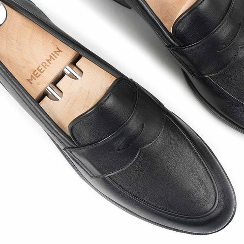 A modern essential reimagined, our Penny Loafer in sleek black French Softcalf brings together timeless craftsmanship and effortless wearability. The smooth, supple leather is paired with a minimalist piping apron and an unstructured upper-build feel, giving the shoe a relaxed, contemporary character that adapts to your lifestyle.